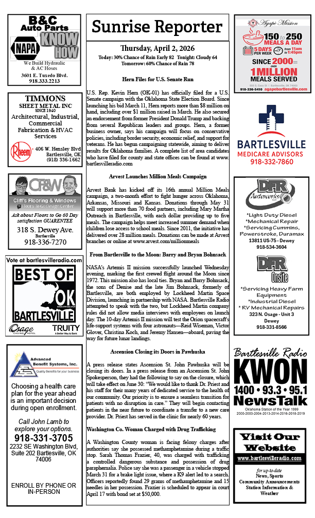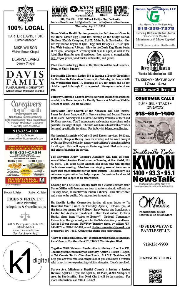 Bartlesville Radio: The area’s best source for news, weather and sports!